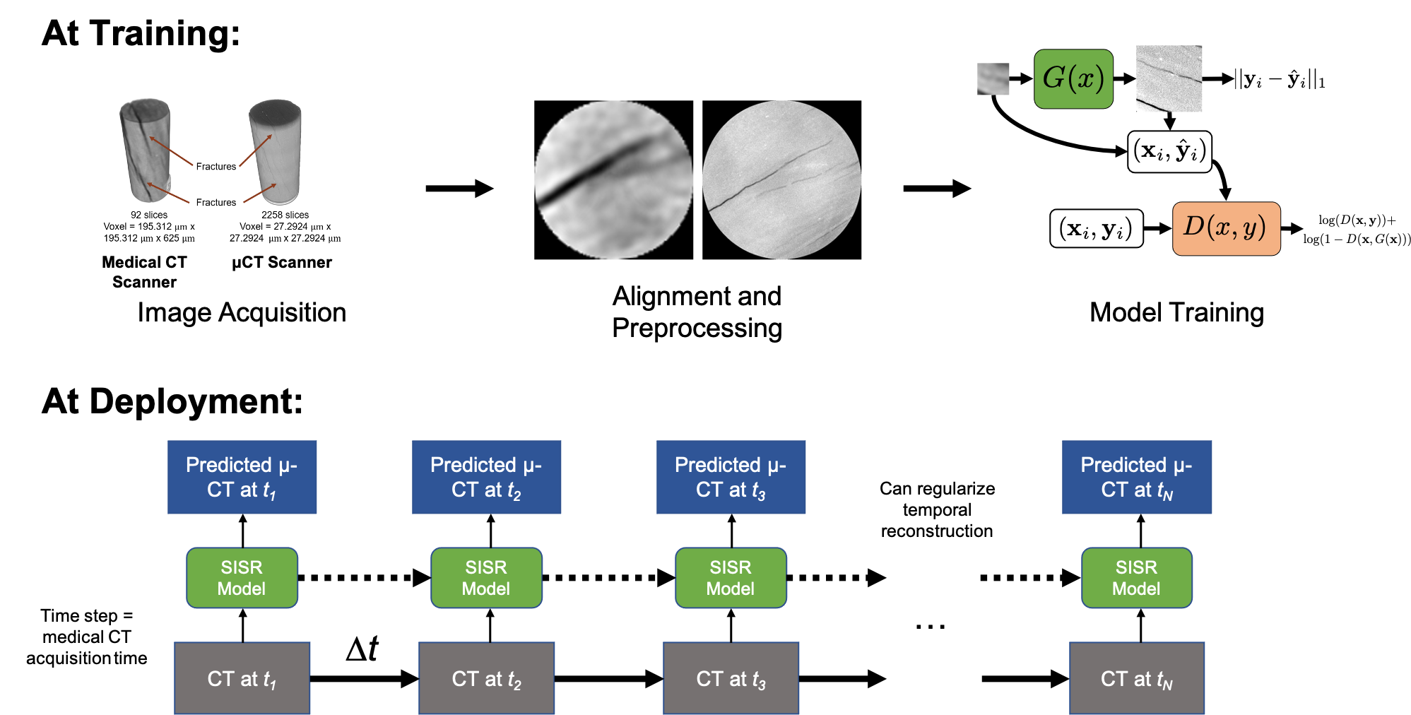 In a supporting capacity, I have also been involved with a project to dynamically image reactive transport processes in shale using single image super-resolution (SISR) models trained with multiscale CT/micro-CT data. Characterizing reactive transport processes in shales require at least microscale resolution. Micro-CT images, however, require minutes to hours to acquire, making micro-CT inapplicable for imaging transport processes taking place on time scales of second or minutes. Medical CT images meanwhile have an order of magnitude lower resolution than micro-CT but have acquisition times 1-2 orders of magnitude smaller. Our goal is to train deep learning SISR models to predict high-resolution micro-CT image volumes from low-resolution medical CT scans, then deploy this model to downscale images acquired during a reactive transport experiment.