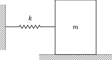 Mass spring systems are composed of three main components: masses, springs, and dashpots. We use the equations for the spring and friction (dashpot) forces in conjunction with Newton’s second law to create the equation(s) of motion for the system. To get the idea of what we’re talking about, let’s consider a very simple mass spring system: