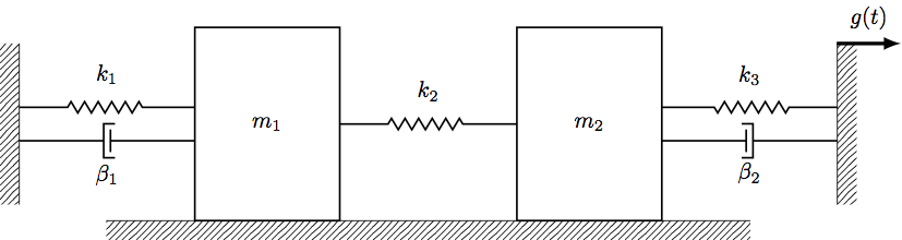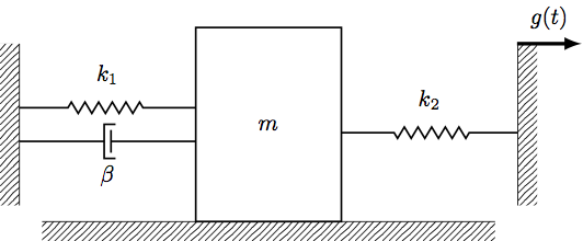 \[mx'' = - k_1 x - \beta x' - k_2 (x - g(t))\]or