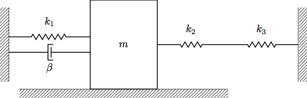Before we move onto the hard section, we should quickly note what happens when we have multiple springs/dashpots in a system. Consider the mass-spring diagram below: