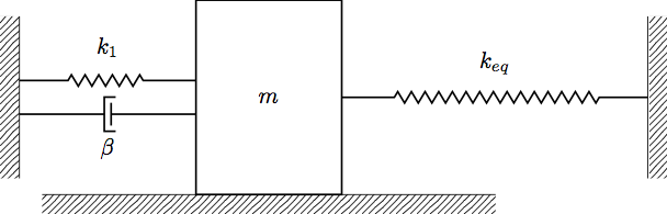 \[k_{eq} = \frac{k_2k_3}{k_2 + k_3}\]Using this, we can easily write the equation of motion for the mass.